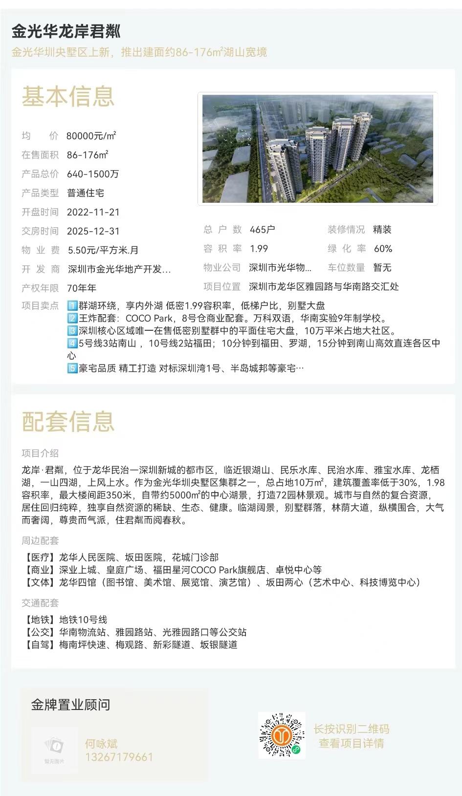 約百萬方濱水大城,大城首發06地塊,早買早享受。華為落址觀瀾;緊鄰銀星科技園、邁瑞醫療,享產業發展紅利。一河七公園環繞,緊鄰民法公園