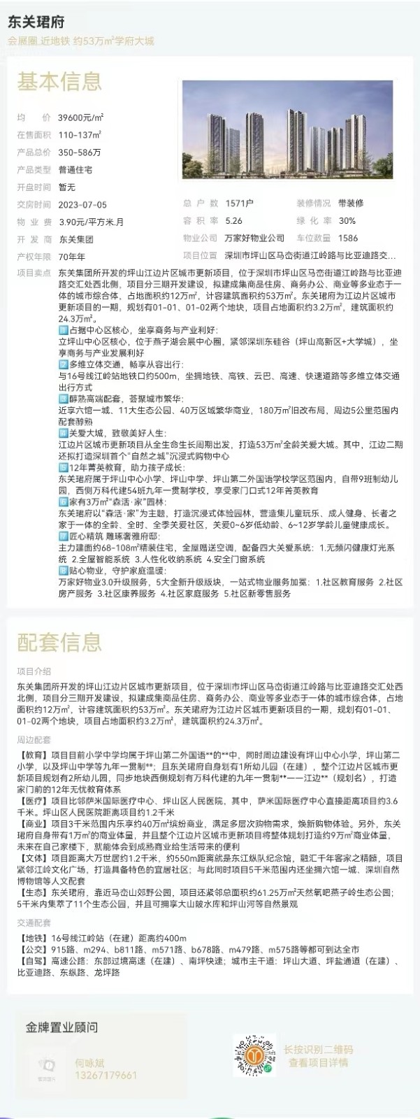 東關集團所開發的坪山江邊片區城市更新項目,位于深圳市坪山區馬巒街道江嶺路與比亞迪路交匯處西北側,項目分三期開發建設,擬建成集商品住