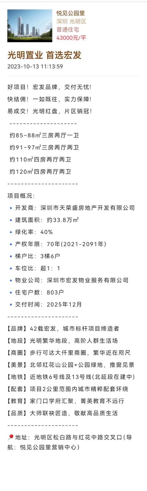 區域:公明街道松白路和紅花中路交匯處 最新開盤:2023-7-9
